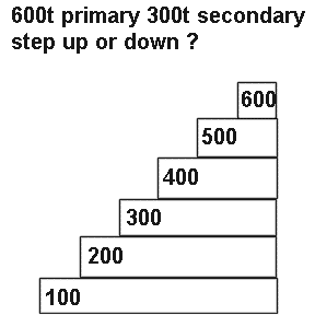 NB. The stepping up or down has nothing to do with the fuse rating in the primary or secondary windings should there be such items in the circuit.