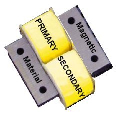 There are two configuration shown a side by side with a metal core and one above the other with a metal core. Each style provides the transformation of voltage when an AC current is applied.