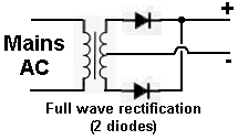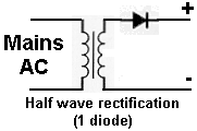 There are several ways to obtain a dc supply from an a.c. supply using transformers and diodes. 1 transformer and 1 diode will give what we call half-wave rectification.